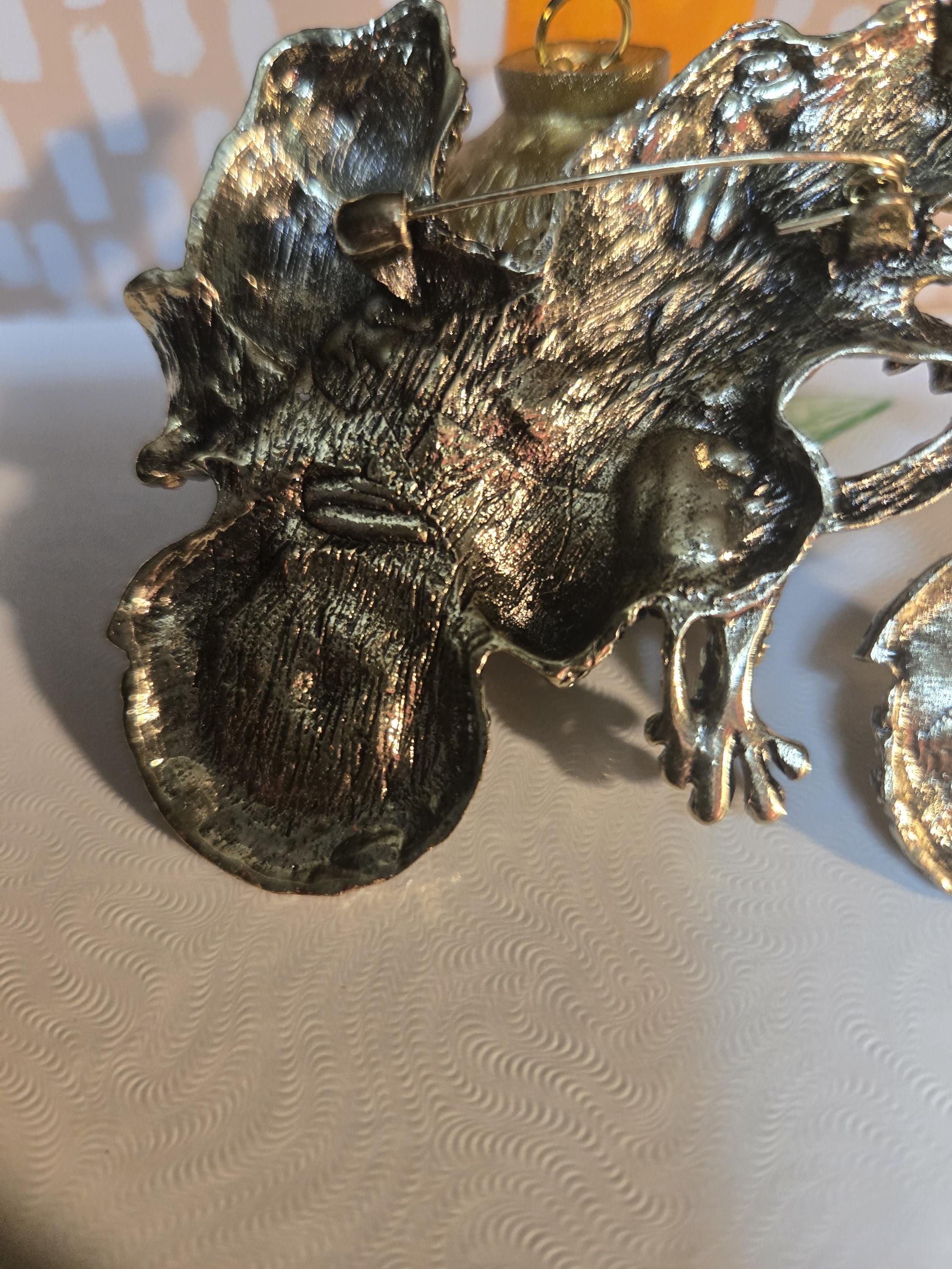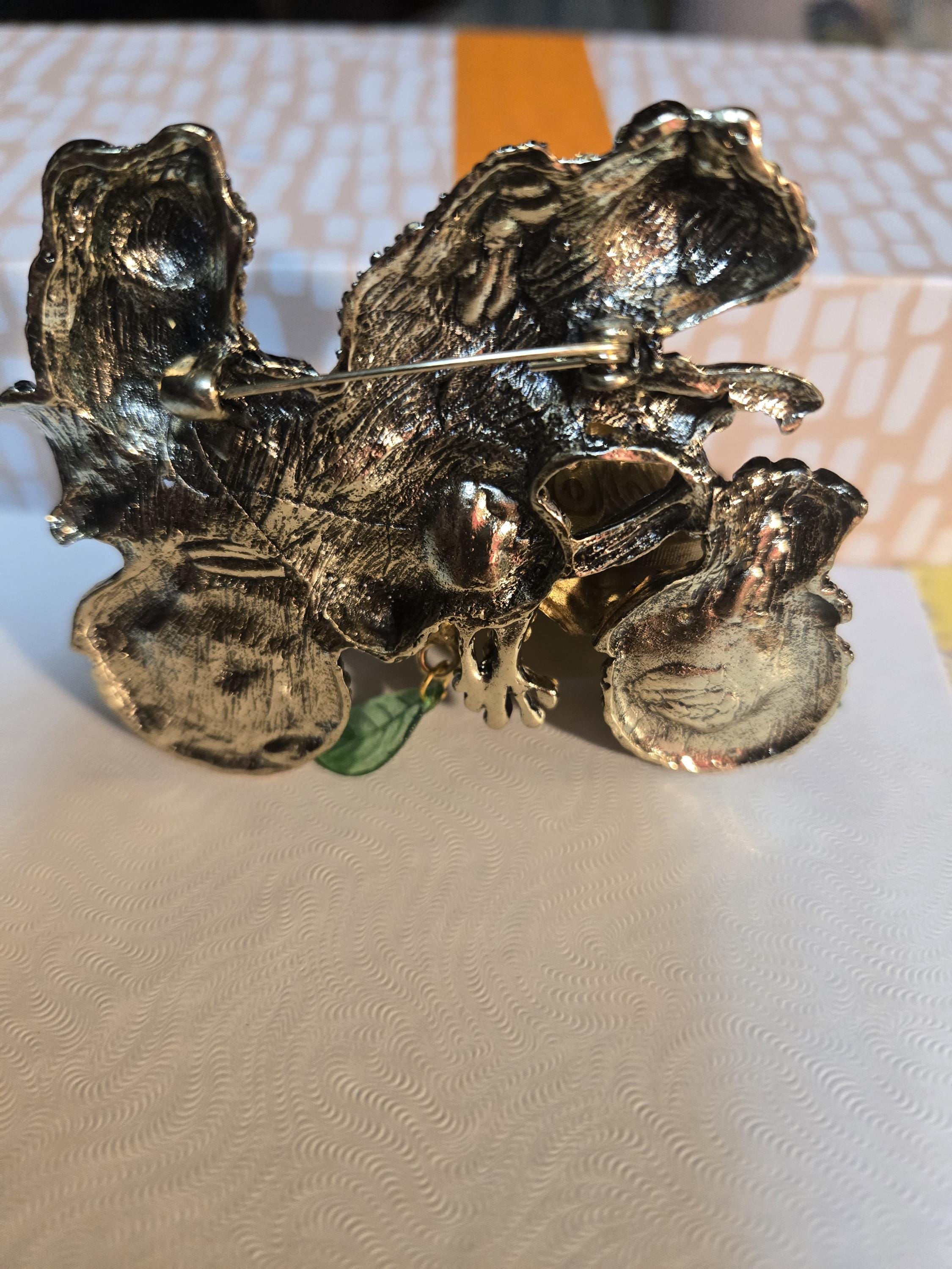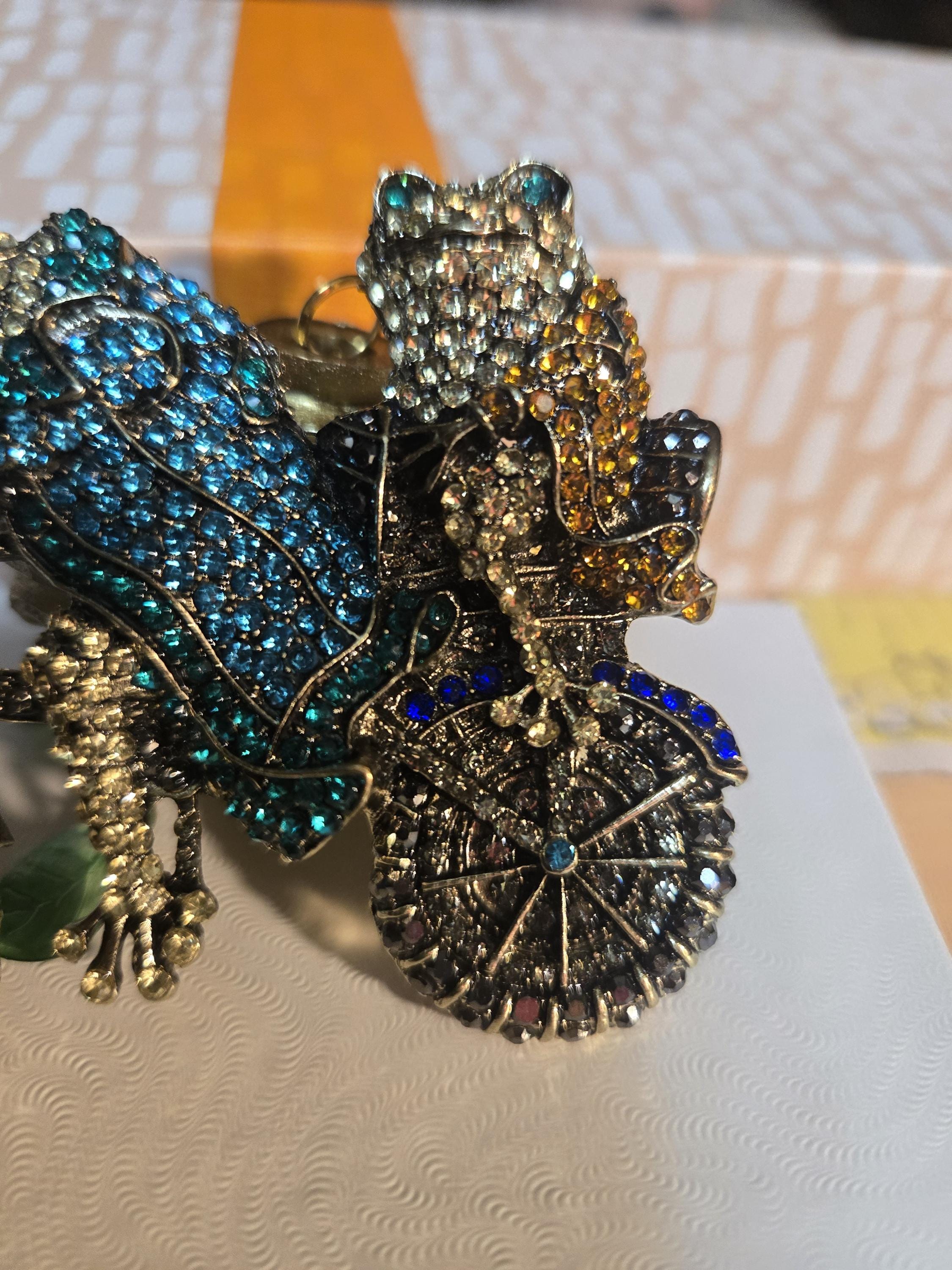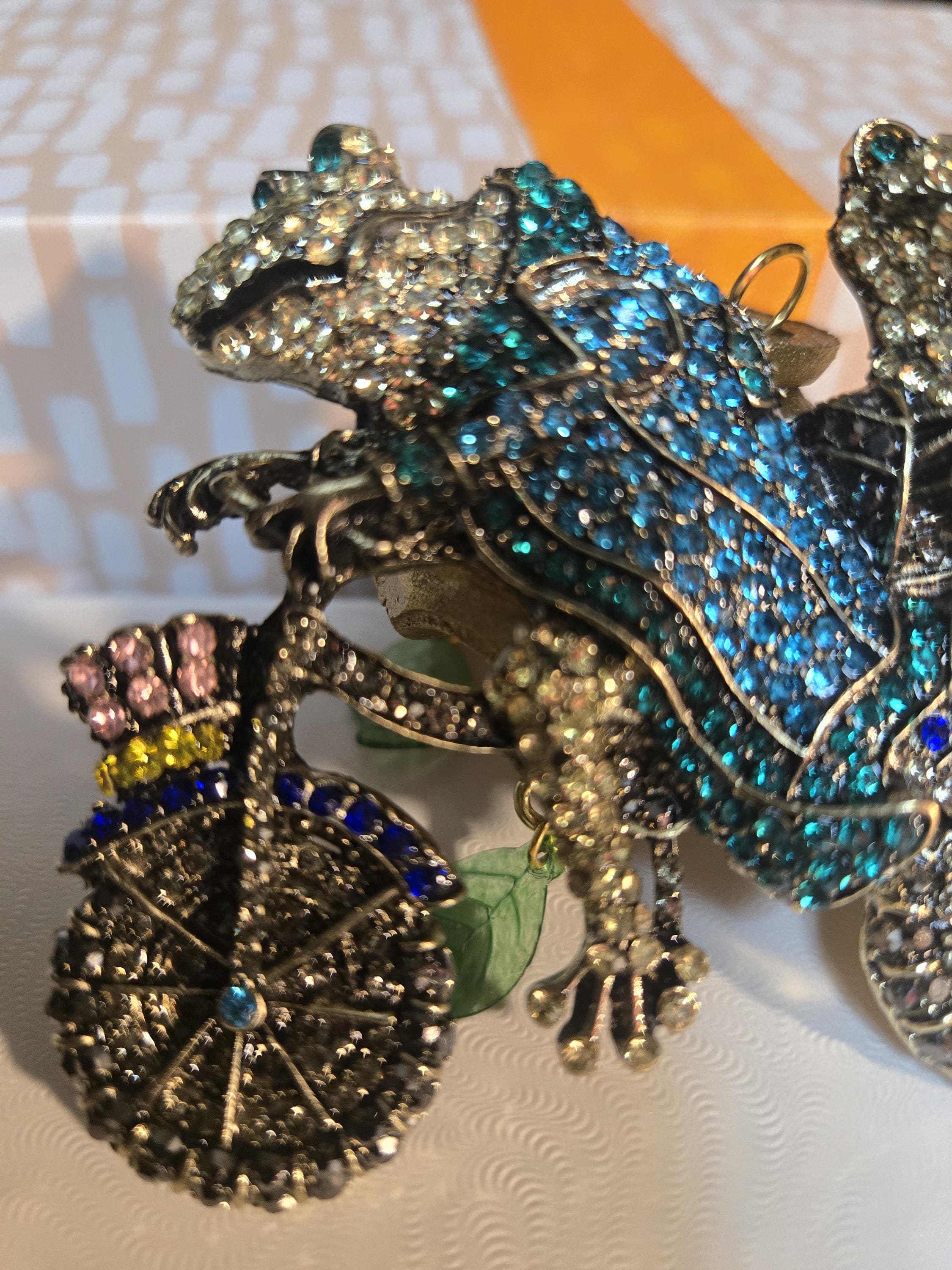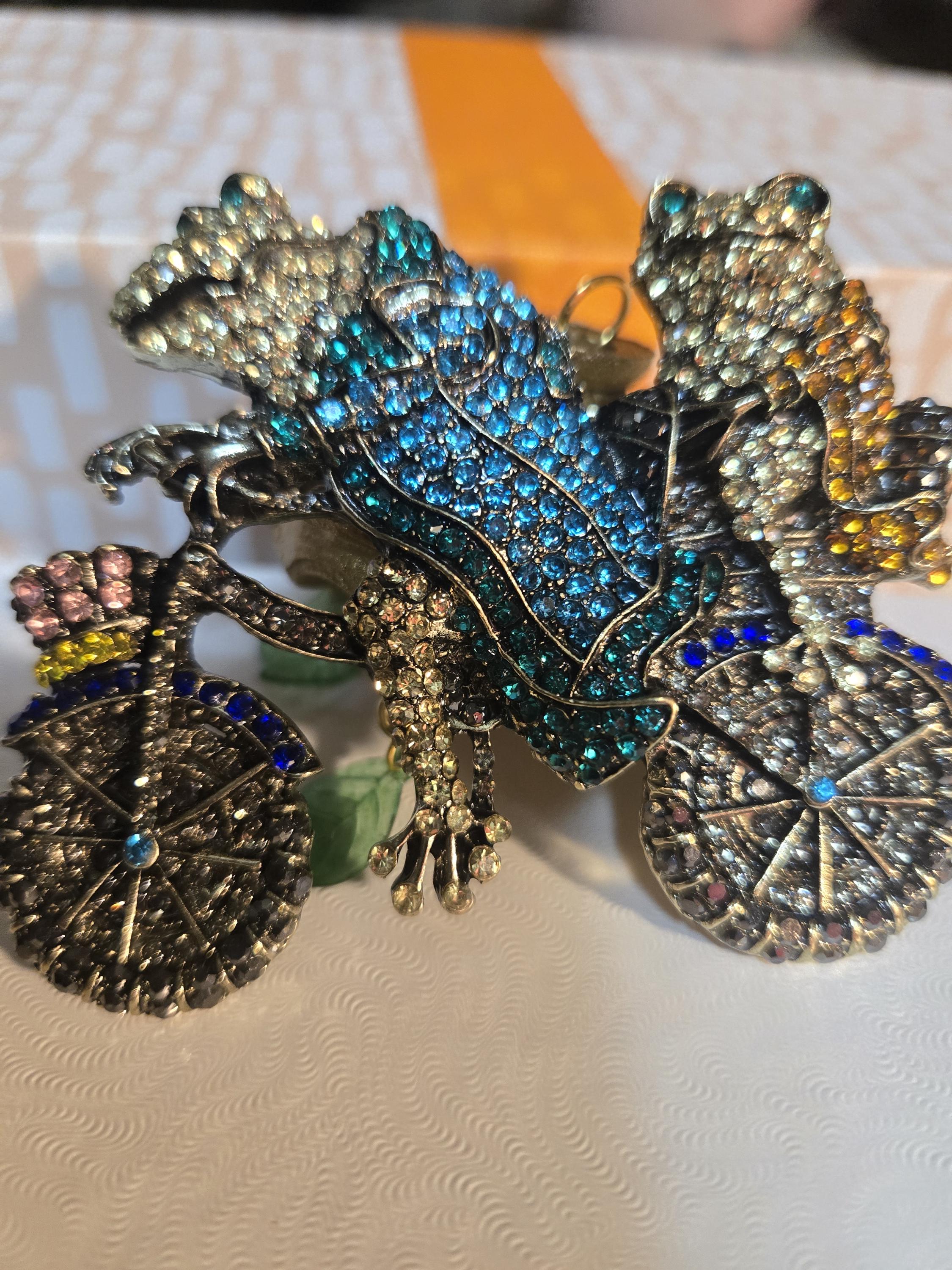 Newer Stunning costume BROACH (pin) not pendant. Spring has sprung. Froggy man pedalling a bicycle with his women on the back